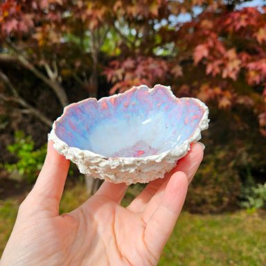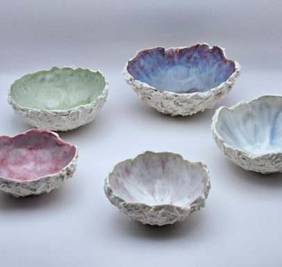 I love to create contrasts, with many of my pieces combining natural, raw white exteriors with vibrant interior glazes.
