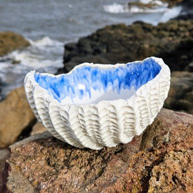 I'm a ceramic artist based near the coast in East Lothian in Scotland, creating handbuilt porcelain pots inspired by the textures, patterns and organic forms of the sea.