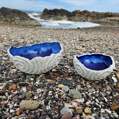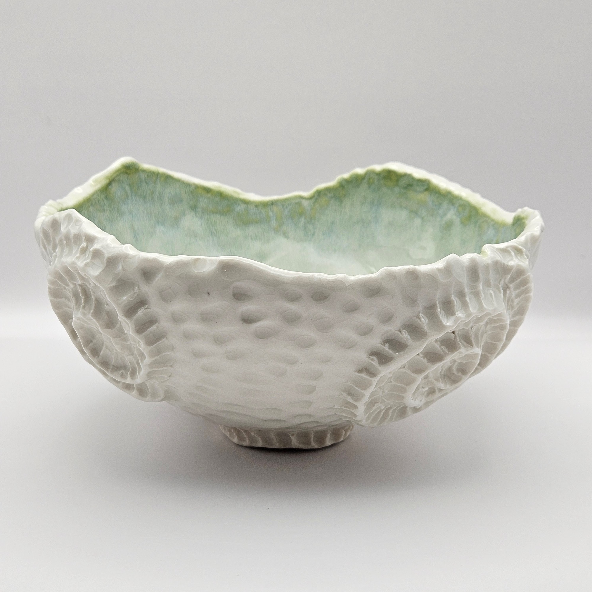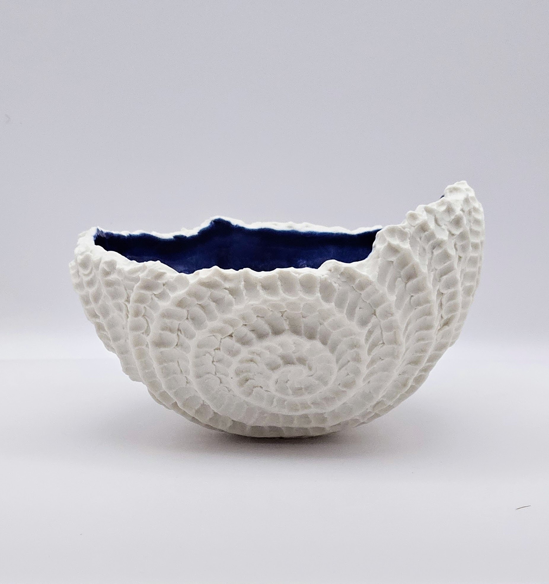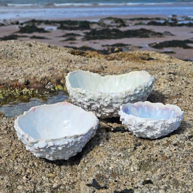 I'm a ceramic artist based near the coast in East Lothian in Scotland, creating handbuilt porcelain pots inspired by the textures, patterns and organic forms of the sea.